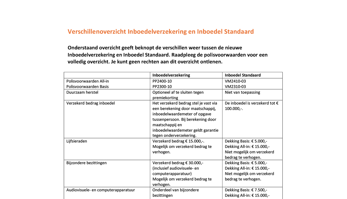 Inboedel Standaard
